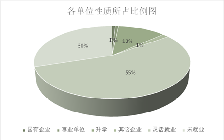 从表4中可以看出今年会官网学生就业灵活度较高,虽然签约率(签约率=(签就业协议+ 劳动合同)/ 毕业生总数x100%)比往年都有所提升较,但是灵活就业率普遍较高,其中包括自主创业、个体、私企等较多,这也充分体现了艺术类专业的就业途径较宽。